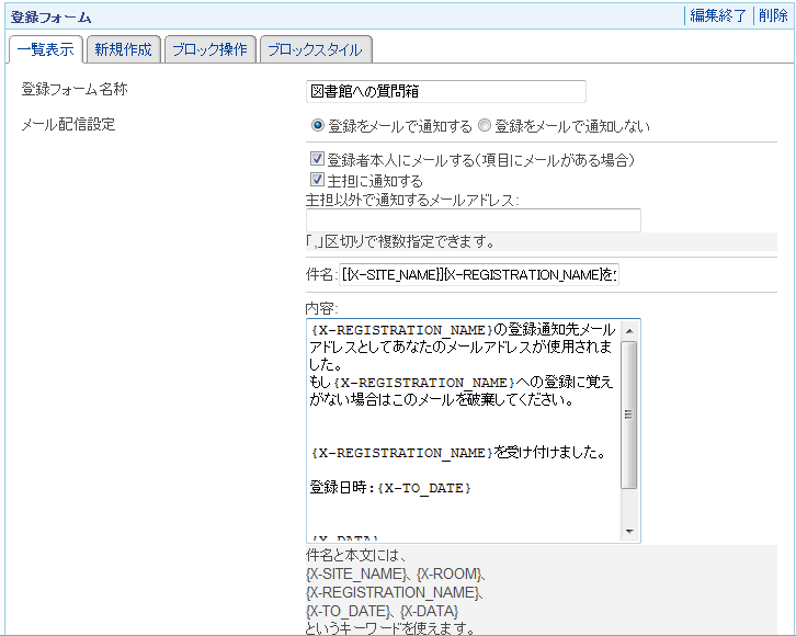 をクリックします。これで、登録フォームへの登録が終了しました。